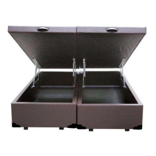 Em até 12x de R$ 96,44 com juros No PixR$ 940,79 Cama Box Baú King Bipartido Sintético Marrom – Estrutura Reforçada – Com Pistão A Gás