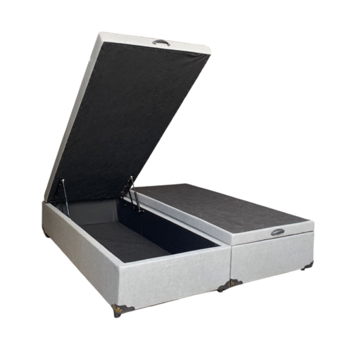 Cama Box Baú Queen Bipartido Linhão Cinza – Estrutura Reforçada – Com Pistão A Gás