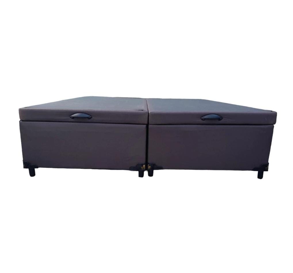 Cama Box Baú King Bipartido Linhão Marrom Com Pistão A Gás