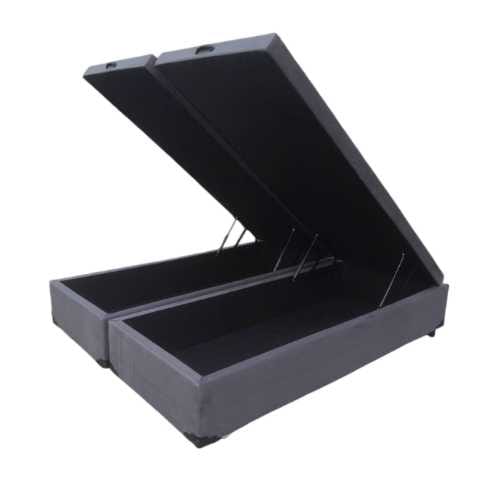Cama Box Baú King Bipartido Suede Cinza Com Pistão A Gás