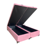 Cama Box Baú King Bipartido Suede Rose – Com Pistão A Gás