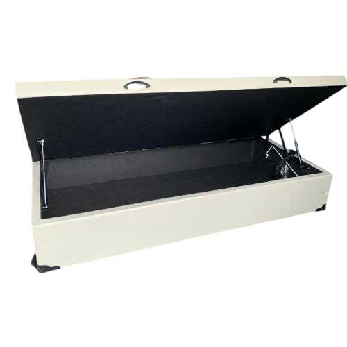 Cama Box Baú Solteirão King Blindado Sintético Branco Com Pistão A Gás