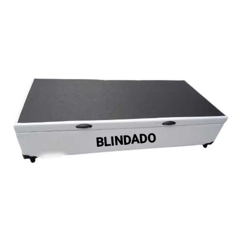 O Box é completamente fechado com chapas de madeira em todas as laterais, o que aumenta a proteção do tecido contra eventuais avarias causadas por perfurações, rasgos e também proporciona maior suporte estrutural.