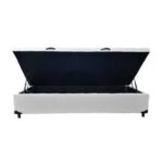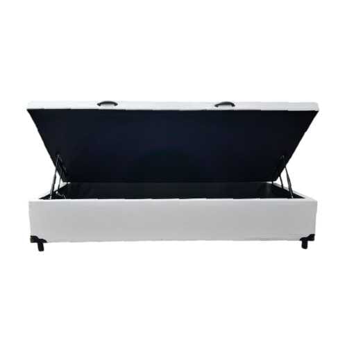 Cama Box Baú Solteirão King Blindado Sintético Branco Com Pistão A Gás