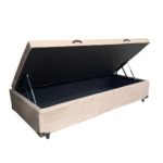 Cama Box Baú Solteirão King Suede Bege – Com Pistão A Gás